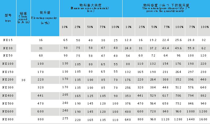 NE系列鏈式提升機(輸送機)可以分為如下型號:NE15、NE30、NE50、NE100、NE150、NE200、NE300、NE400、NE500、NE600、NE800。